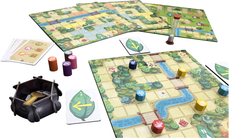 Es ist ein familienfreundliches, kooperatives Spiel, bei dem die Spieler zu jeder Zeit jede beliebige Heldenfigur bewegen dürfen – aber jeder nur in eine bestimmte Richtung. Erst durch Abstimmung untereinander finden die vier Helden ihren Weg durchs Labyrinth zu den Zutaten und meistern Zusatzaufgaben.